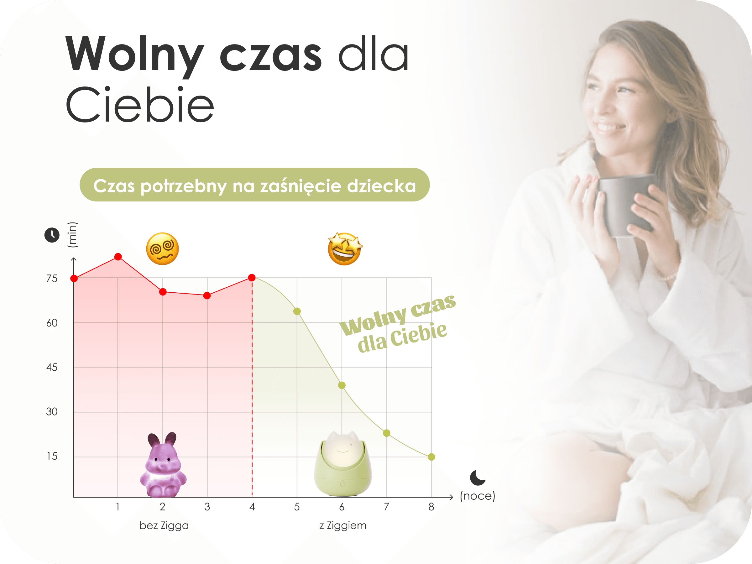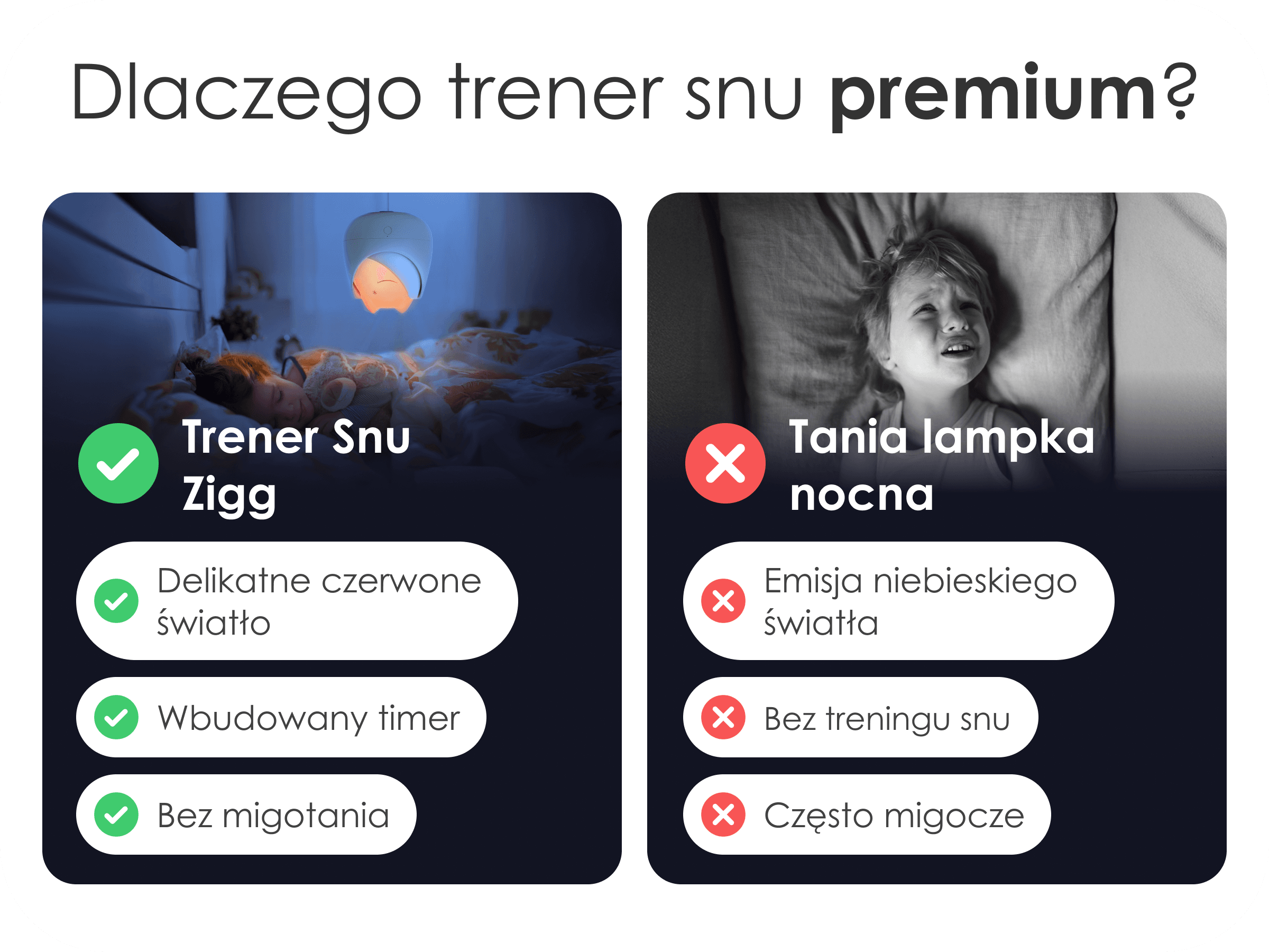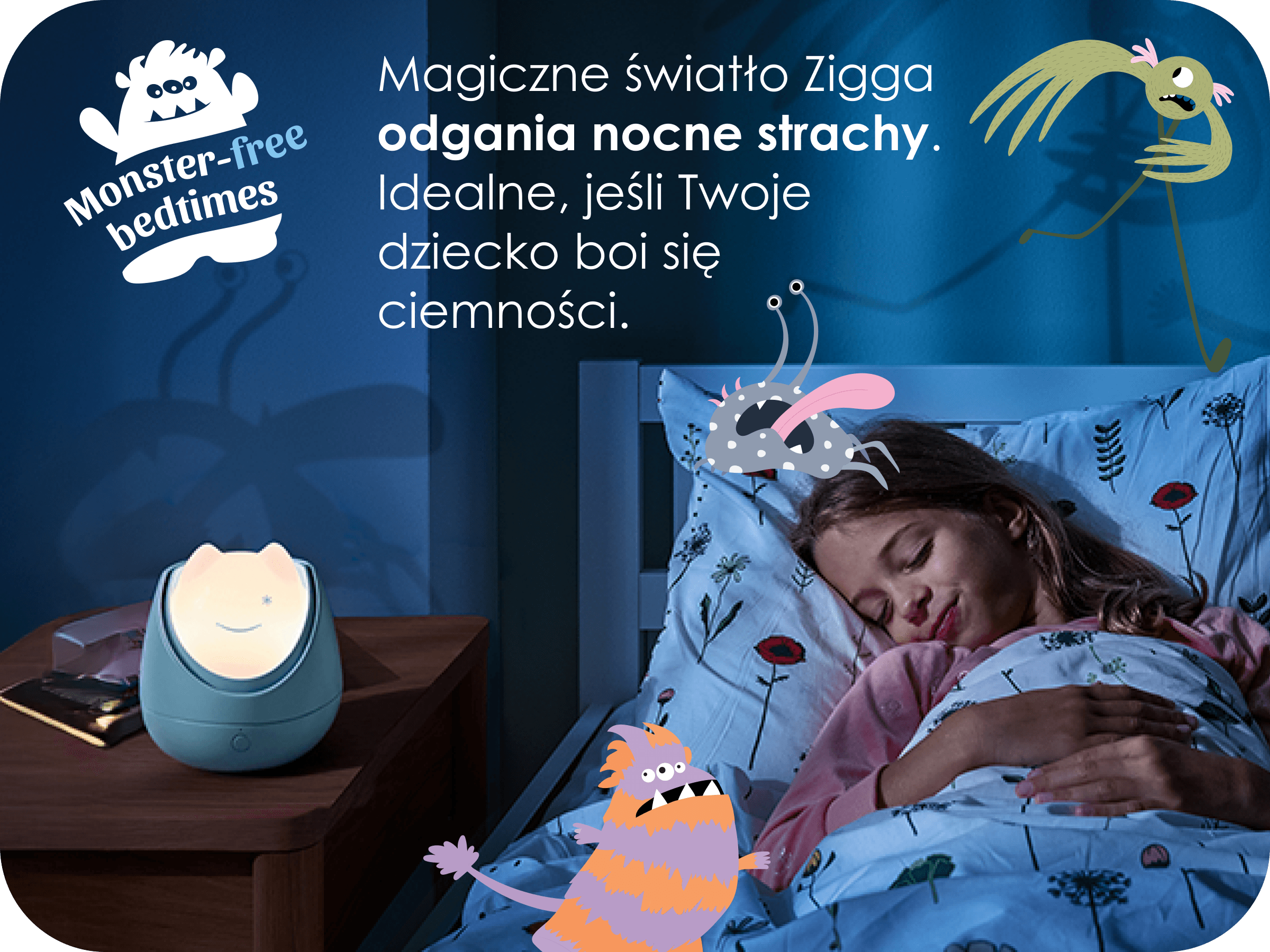 Czerwone światło Zigga wspiera naturalny sen – dzięki czemu Twoje dziecko zasypia szybciej i spokojniej.